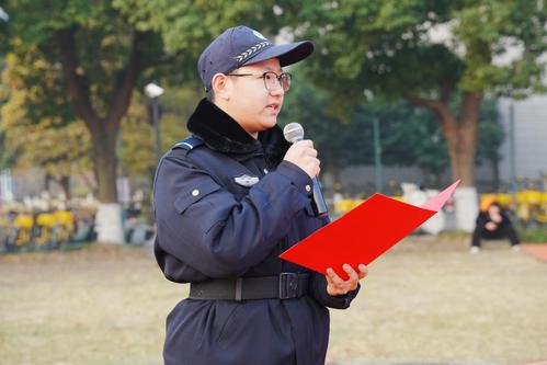 警务学院(司法鉴定学院)特训队带来警务技能展示。他们以方正整齐的队列姿态、刚劲有力的格斗基础动作,展现了警务学子过硬的专业素养与昂扬向上的精神风貌。学生朗诵《国旗下的青春誓言》,字里行间满含青年学子的赤子热忱,既抒发了“青春逢盛世,报国正当时”的坚定信念,更传递出“护正义、守安宁”的青春追求,号召广大青年将“强国复兴有我”的信念内化于心、外化于行。