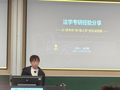 匡亚萱围绕考研备考作专题分享,梳理分阶段备考任务及公共课实用技巧,针对性解答法考与考研平衡的相关疑问;杨莫轩分享国企就业经验,纠正学子对国企就业的认知偏差,详细讲解国企校招流程、报考要求及适配岗位,引导学子打破就业局限、把握校招关键节点。
