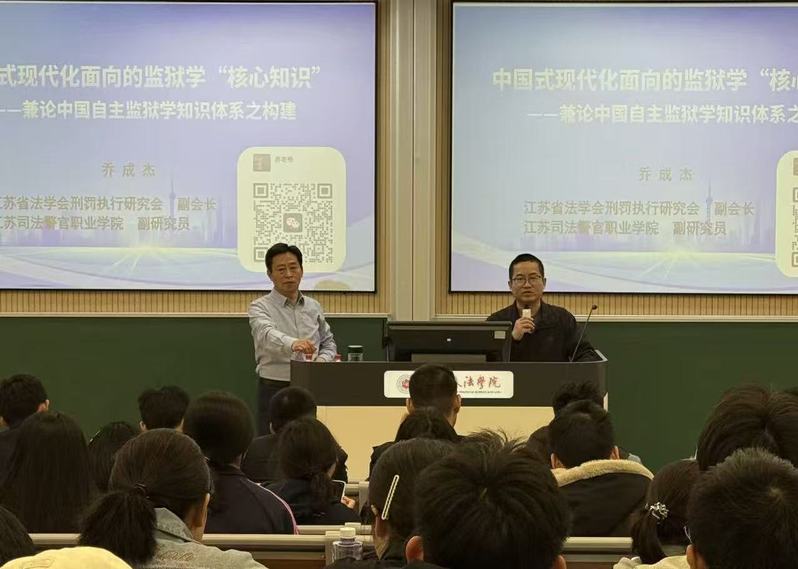 4月7日下午,警务学院(司法鉴定学院)关于“中国式现代化面向的监狱学‘核心知识’兼论中国自主监狱学知识体系之构建”学术讲座在主教学楼302B开讲。本次讲座由江苏司法警官职业学院副校长乔成杰教授主讲,警务学院(司法鉴定学院)院长蔡一军教授主持。