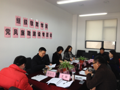 2016年3月11日上午,继续教育学院(培训部)在普陀校区召开了党风廉政建设专题会,会议由继续教育学院院长马小娜主持,全体党员参加了会议,校党委副书记、副校长周银娥出席了会议。