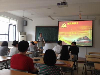 2016年7月1日下午,按照继续教育学院(培训部)党支部2016年党建工作计划,继续教育学院(培训部)党支部在普陀校区B308室,进行了“学习新党章”的专题党课学习活动。本次党课由支部书记储德峰同志主讲,继续教育学院(培训部)全体党员参加。