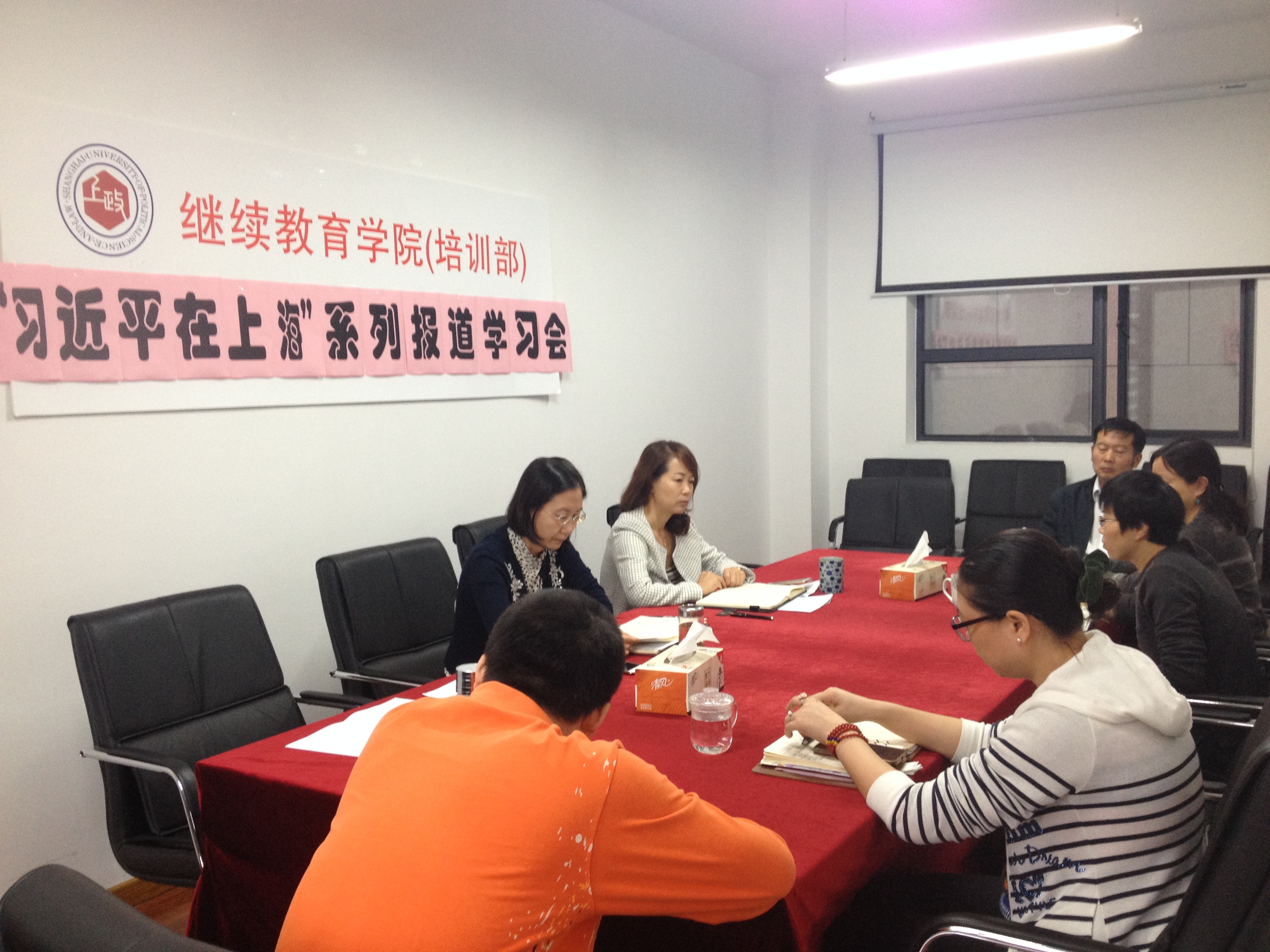 2017年10月12日,继续教育学院(培训部)召开党支部学习会,组织党员学习“习近平在上海”系列报道。会议由支部书记程秀玲主持。