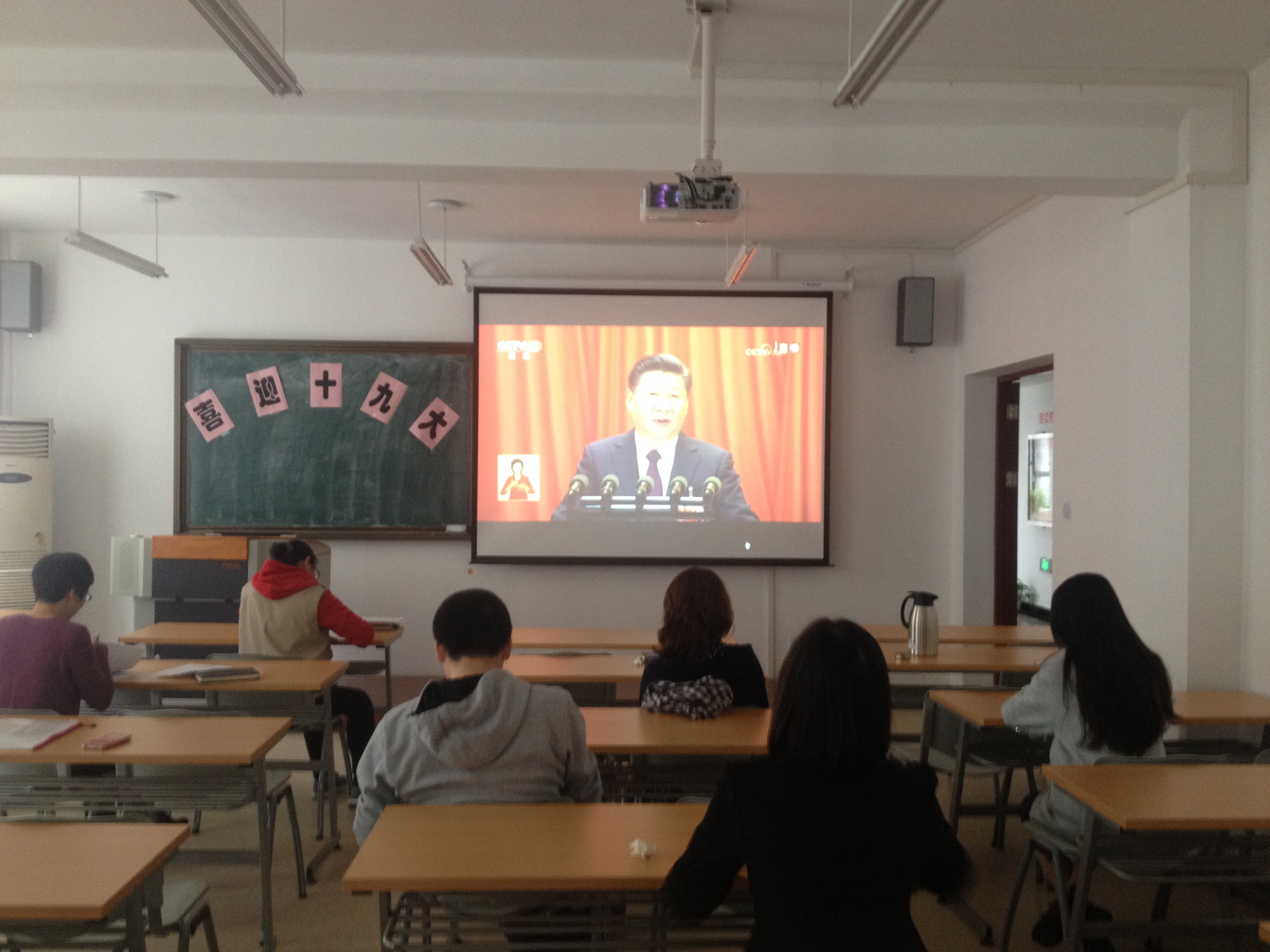 2017年10月18日上午九时,举世瞩目的中国共产党第十九次全国代表大会在北京隆重开幕,继续教育学院(培训部)党支部组织全体党员在普陀校区B308集体观看了十九大开幕式。