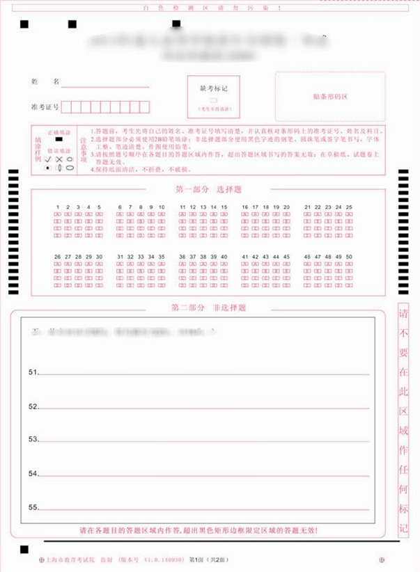 以下为部分科目答题纸样张供考生参考,考试时以实际答题纸样式为准:
