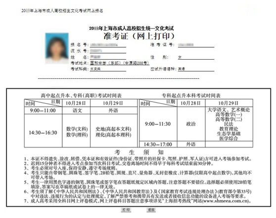 2017年上海市成人高考开考在即,针对考试期间考生遗失准考证的情况,本次考试仍将实施考试期间准考证网上打印。