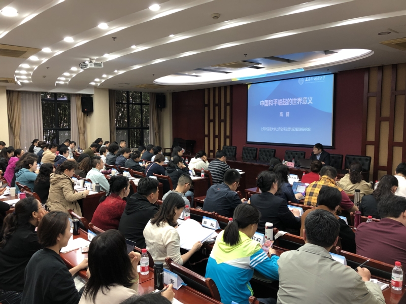 开班仪式上,陈玲就接下来的培训提出要求,希望学员们遵守培训班管理规定,积极参加培训,认真听讲,做好笔记,努力提高自身综合素质,圆满完成本期学习任务。开班仪式后,上海外国语大学的高健教授为学员们做了题为“中国和平崛起的世界意义”专题讲座。高健教授围绕中国的和平发展对世界局势的稳定,和谐世界的构建以及为国际社会提供一个全新的发展模式做了深刻的分析。全面阐述了中国和平崛起的路线与重要意义。学员们认真热情,对培训课程积极参与,并表示出对接下来课程的期待。