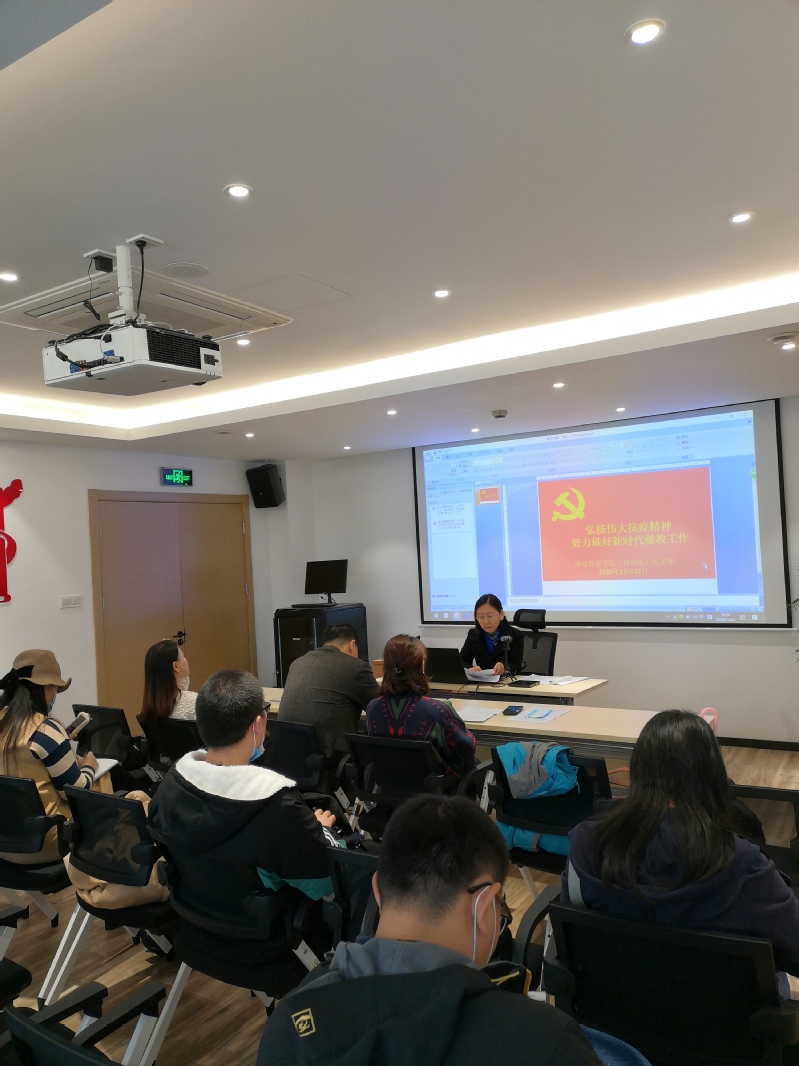 2020年11月27日,继续教育学院(培训部)党支部组织全体党员,赴闵行廉政文化馆开展“四史”学习教育活动,支部书记陈校、副书记程秀玲以及全体党员参加活动。