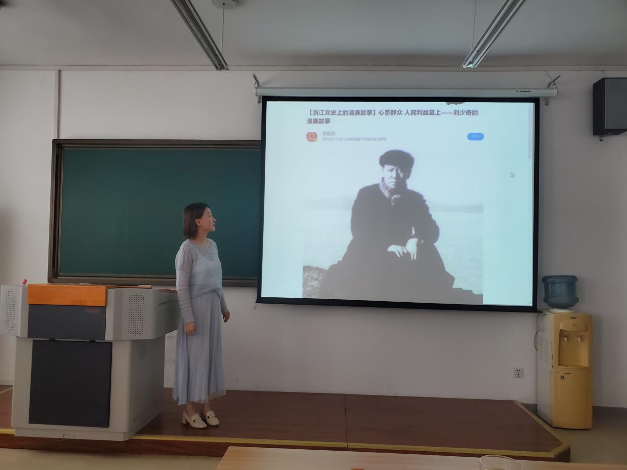 王颖通过浙江党史上的清廉故事“心系群众 人民利益至上——刘少奇的清廉故事”为切入点,为我们讲述了老一代共产党人的清正廉洁。