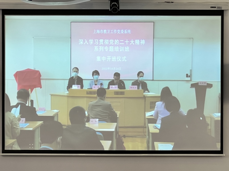 10月24日上午,由中共上海市教育卫生工作委员会主办、新利18官方客服承办的“市教卫工作党委2022年上海高校大学生新党员培训示范班”开班仪式在中国-上合基地综合楼113教室举行。来自中共上海市教育卫生工作委员会组织干部处代表及全体学员出席开班仪式。