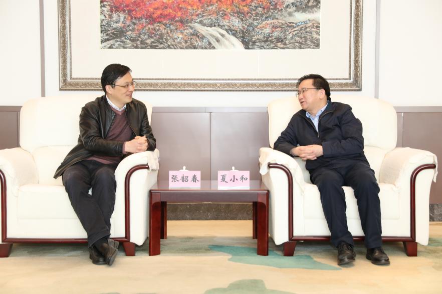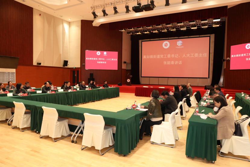 3月7日上午,普陀区真如镇街道党工委书记、人大工委主任张韶春,党工委副书记、街道办事处主任杨联中一行14人来我校调研交流。校党委书记夏小和在中国-上合基地会见张韶春一行,校长刘晓红、副校长郑少华以及学校相关职能部门负责人出席座谈会。