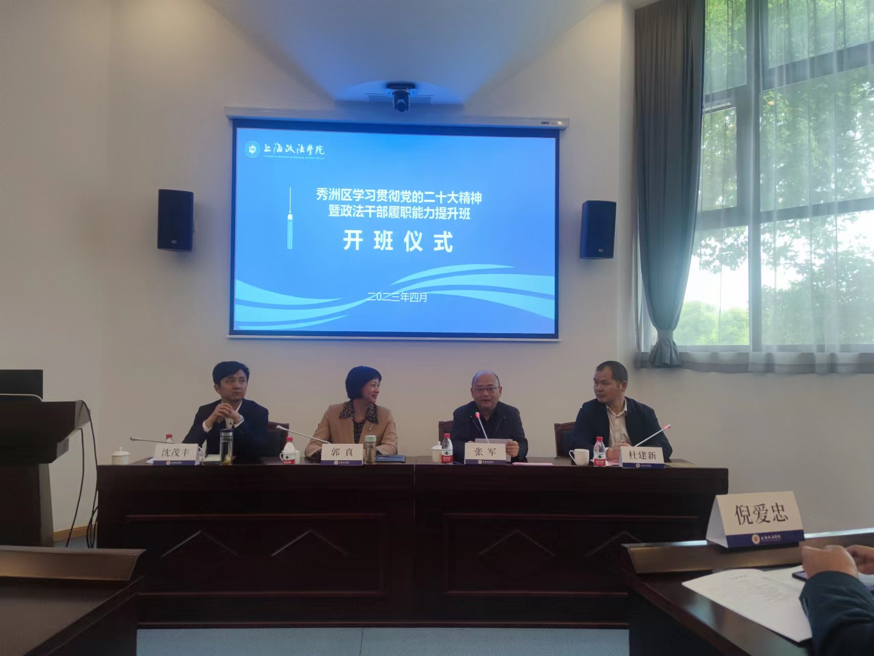 4月23日,浙江省嘉兴市秀洲区学习贯彻党的二十大精神暨政法干部履职能力提升班在我校上合基地开班,来自秀洲区政法委的40余名干部参加此次培训。
