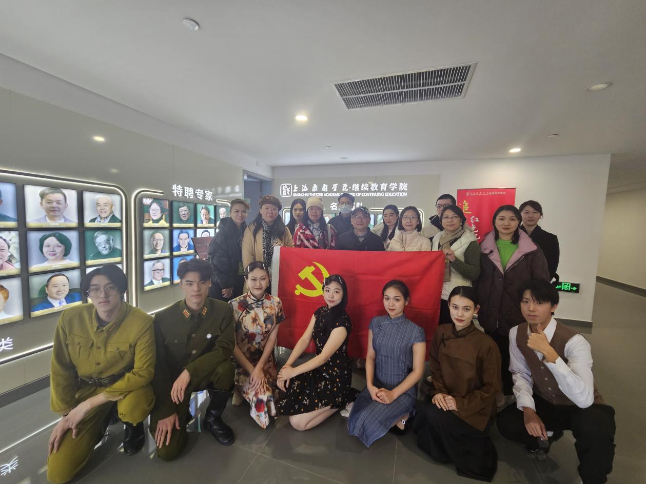 12月1日上午,继续教育学院(培训部)党支部组织党员及党外人士赴上海戏剧学院浦江校区进行党建联组学习交流并观看由上戏继续教育学院师生艺术团表演的“追寻红色记忆”沉浸式演出。