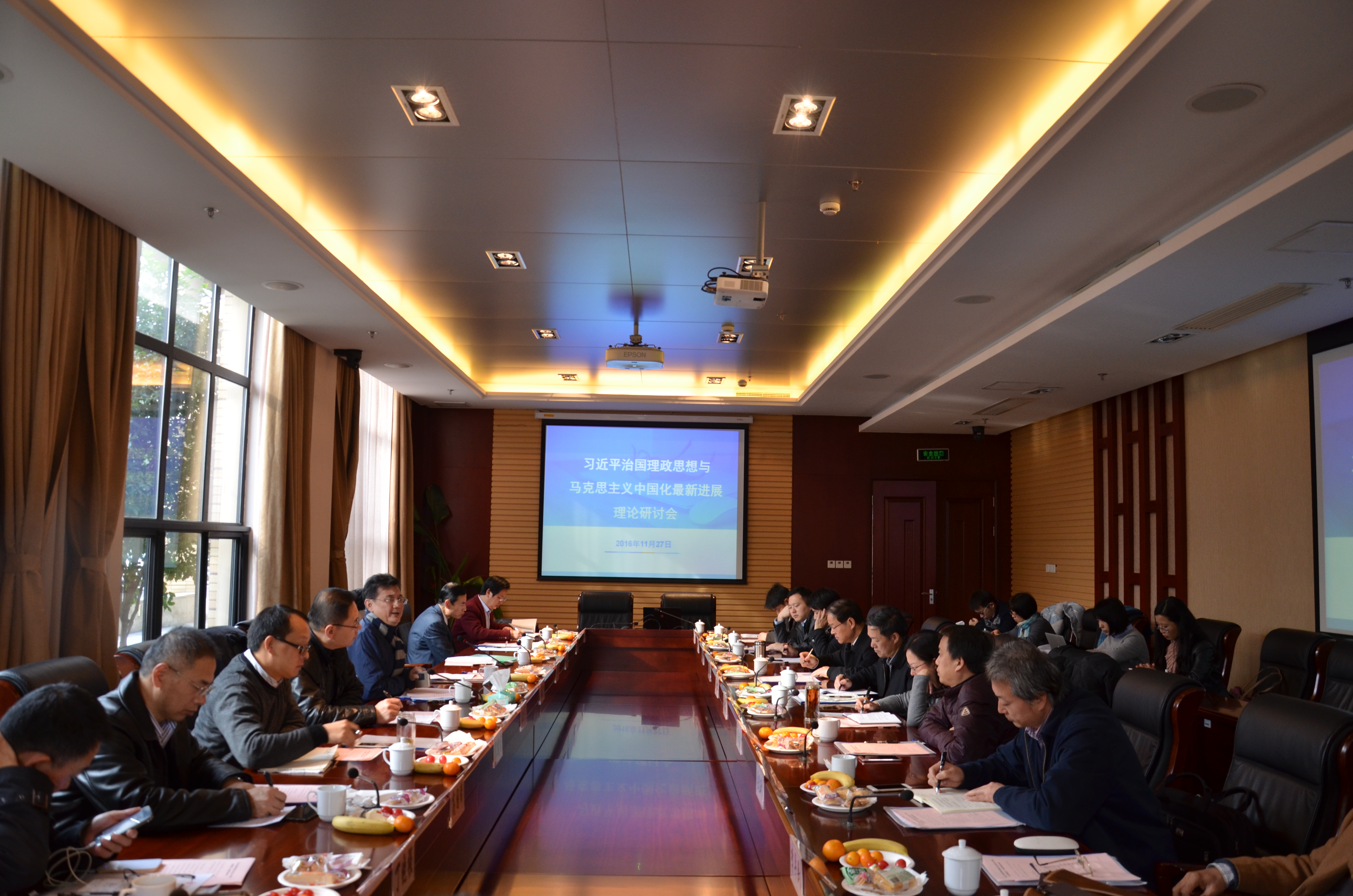 11月27日上午9:00,由科研处、马克思主义学院和宣传部联合主办的以“习近平治国理政思想与马克思主义中国化最新进展为主题的理论研讨会,在我校隆重召开。新利18官方客服党委书记杨俊一、副校长潘牧天、上海市社联专职副主席解超、上海市学生德育发展中心副主任宗爱东,复旦大学、上海交通大学、同济大学、华东师范大学等沪上知名高校的三十余位专家学者出席了研讨会。
