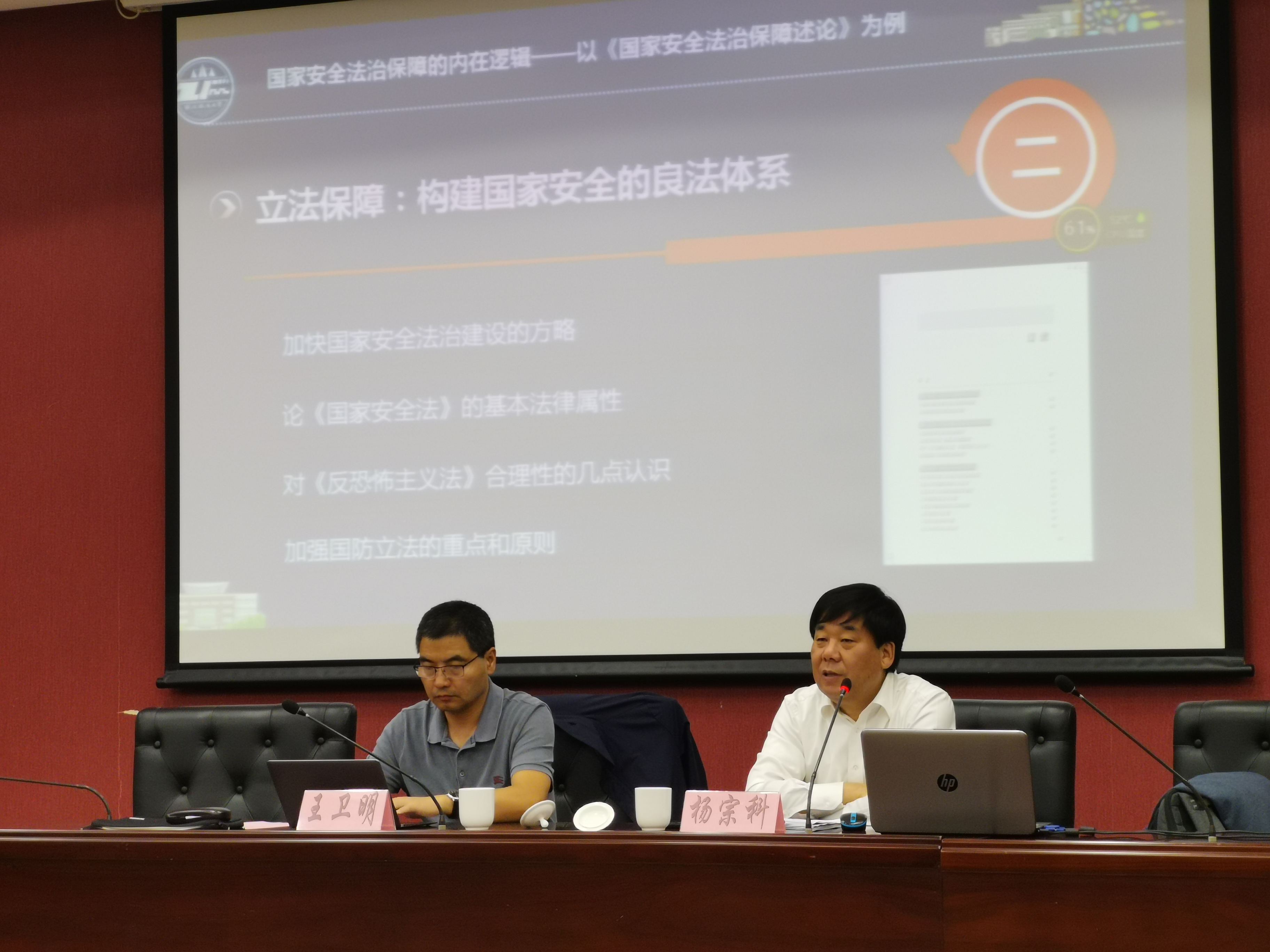 11月1日下午7点,我校邀请西北政法大学校长杨宗科教授,于综合研究中心107会议室开展主题为“加强国家安全法治保障的几点思考”的学术讲座,本次讲座由我校王卫明副教授主持,六十余名在校研究生参与学习讲座内容。