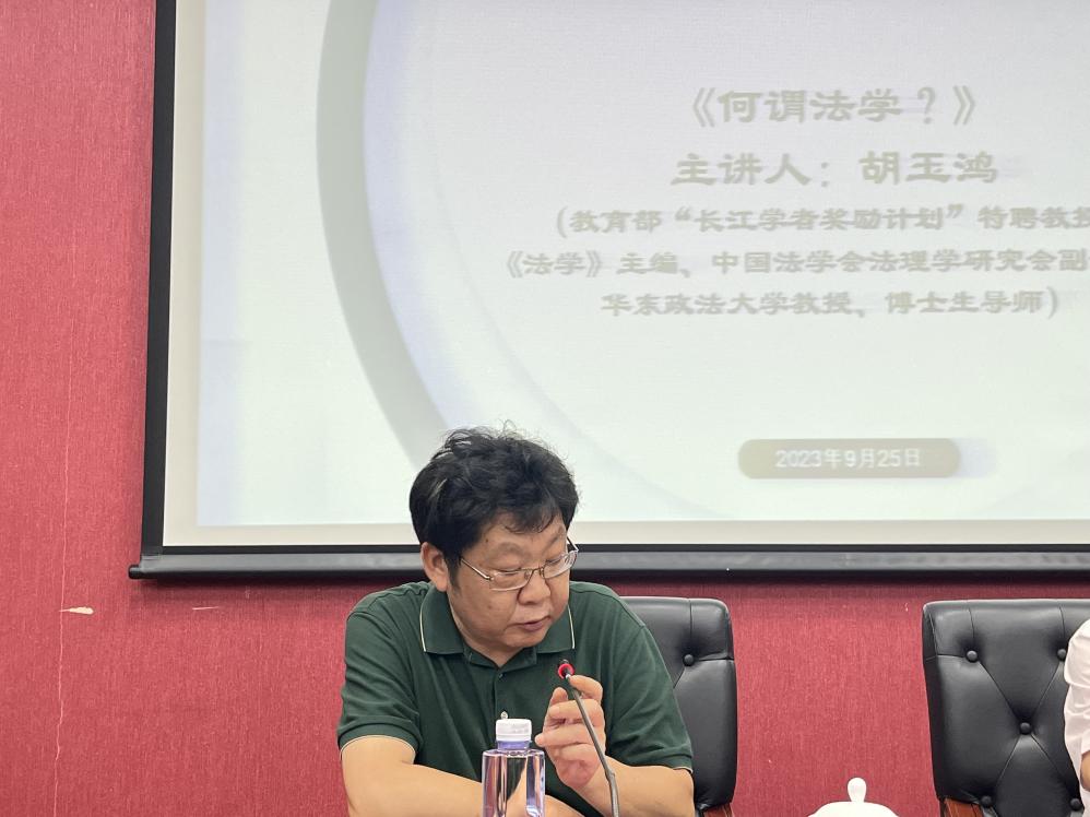 9月25日,新利18官方客服“名家讲坛”第141讲在汇知楼107会议室举行。教育部“长江学者奖励计划”特聘教授、中国法学会法理学研究会副会长、华东政法大学教授胡玉鸿应邀以“何谓法学”为题,作精彩报告。