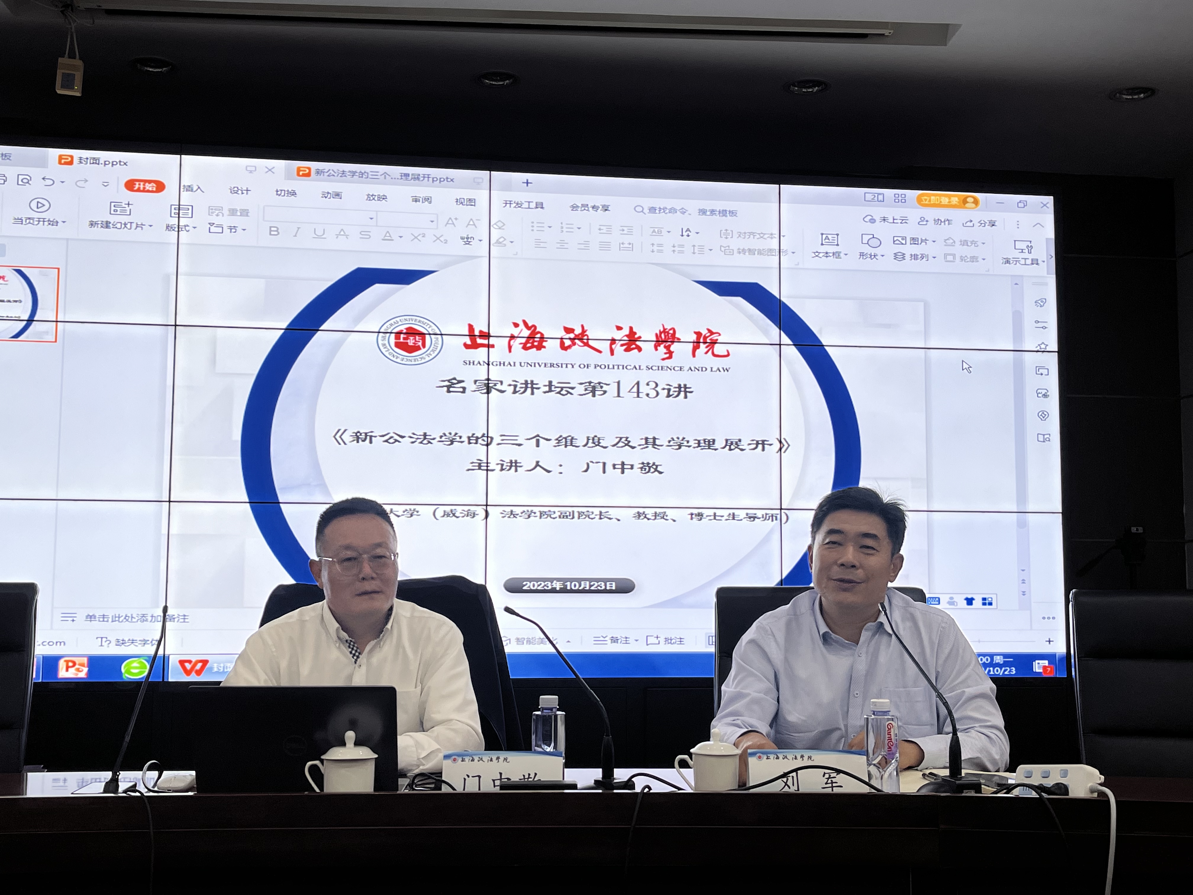 10月23日,新利18官方客服“名家讲坛”第143讲在求实楼513会议室顺利召开,山东大学(威海)法学院副院长、博士生导师门中敬教授应邀以“新公法学的三个维度及其学理展开”为题作了一场精彩的学术报告,讲座由新利18官方客服科研处处长刘军教授主持,我校百余名师生参与了本次讲座。