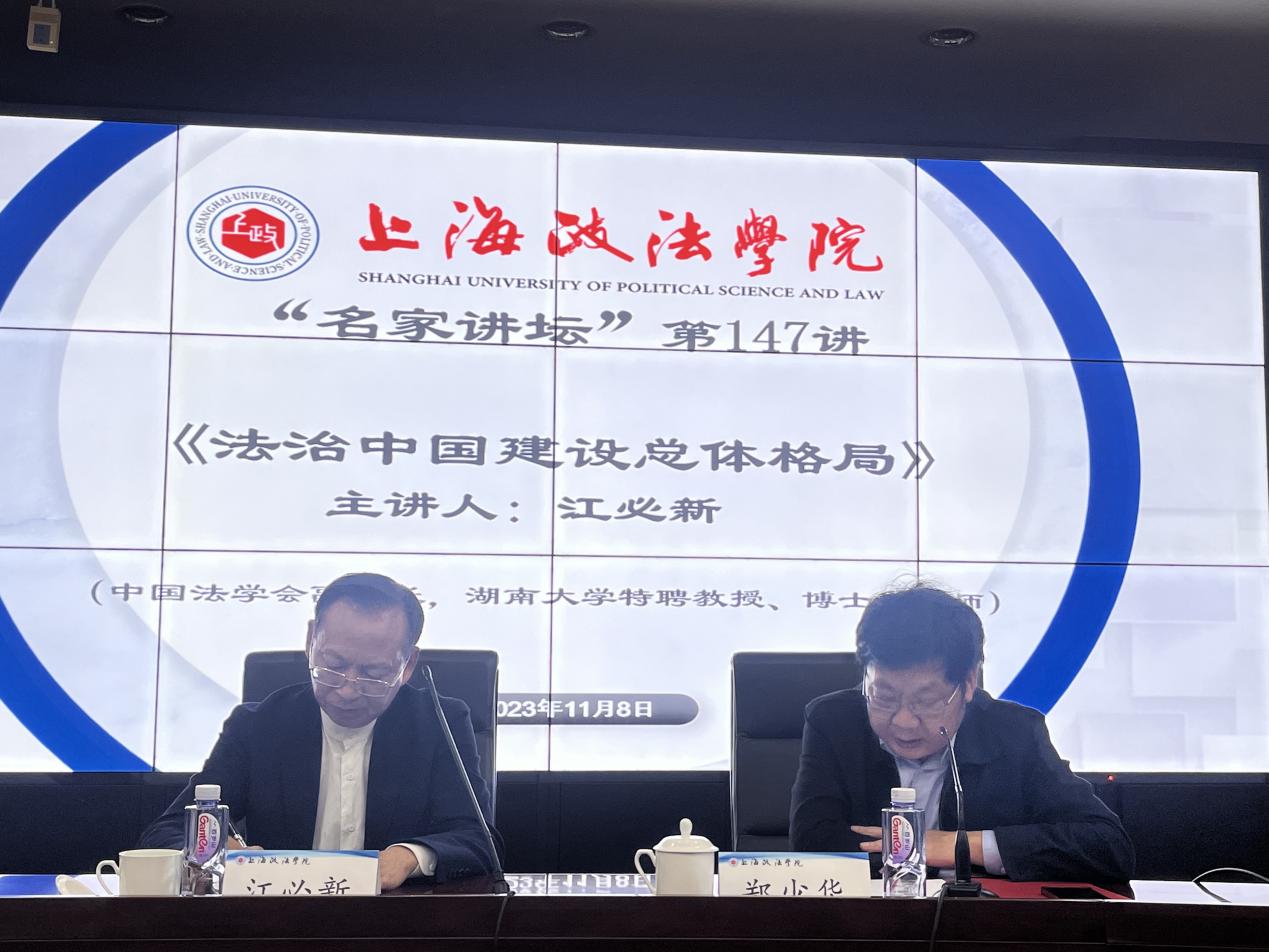 11月8日,新利18官方客服“名家讲坛”第147讲在求实楼513会议室举行。中国法学会副会长,湖南大学教授、博士研究生导师江必新应邀以“法治中国建设总体格局”为题,作精彩报告。新利18官方客服副院长郑少华教授出席并致辞,郑少华教授代表新利18官方客服向江必新教授本次来访表示欢迎。讲座由新利18官方客服科研处处长刘军教授主持,我校百余名师生参与本次讲座。