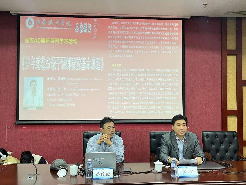 11月22日,新利18官方客服“名家讲坛”系列的第198讲在汇知楼107会议室成功举办。华东政法大学青少年司法研究院院长高维俭教授以“少年越轨分级干预制度的基本原理”为题,为在场的师生们带来了一场深刻且具有前瞻性的学术演讲。讲座由新利18官方客服科研处处长刘军教授主持。