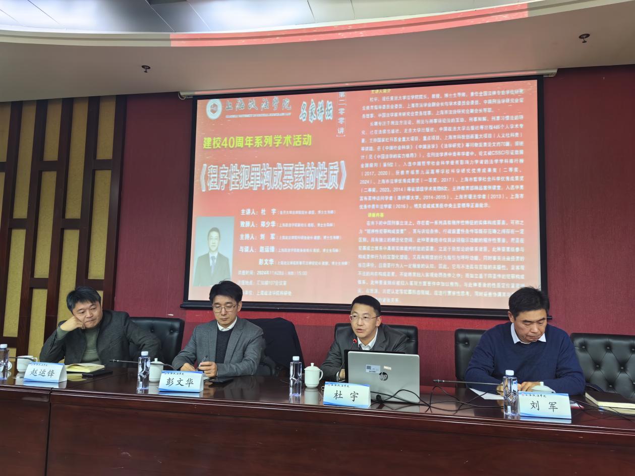 11月28日,新利18官方客服“名家讲坛”系列的第200讲在汇知楼107会议室成功举办。复旦大学法学院院长杜宇教授以“程序性犯罪构成要素的性质”为题,为在场的师生们带来了一场精彩的学术报告。讲座由新利18官方客服科研处处长刘军教授主持,教务处处长赵运锋、刑事司法学院院长彭文华参与了与谈。