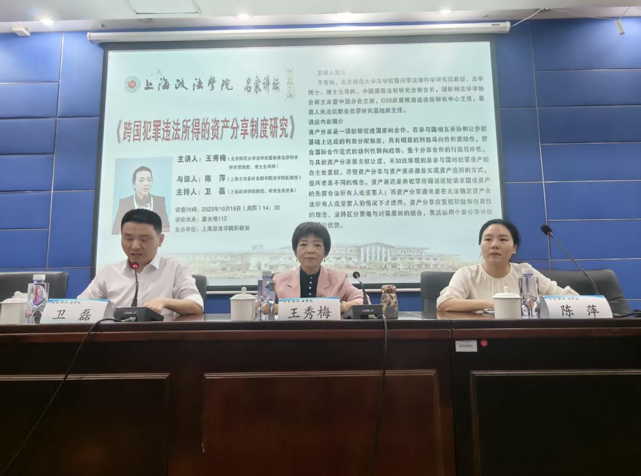 10月16日下午,新利18官方客服“名家讲坛”系列的第243讲在庸夫楼112会议室成功举办。北京师范大学法学院王秀梅教授以“跨国犯罪违法所得的资产分享制度研究”为题,为在场的师生们带来了一场深刻且具有前瞻性的学术演讲。讲座由新利18官方客服卫磊教授致辞并主持,上海立信会计金融学院法学院陈萍副教授参与与谈。