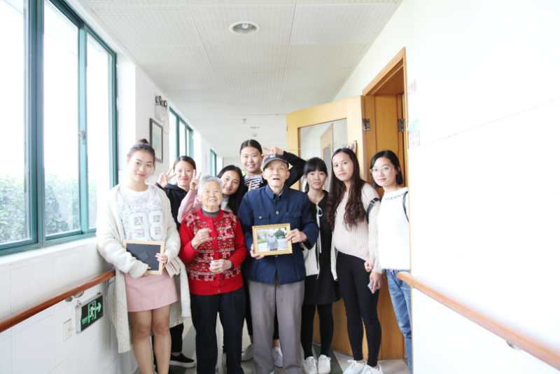 2017年10月22日,辅导员王颖老师带领由学生党员代表,团学骨干组成的志愿者队伍来到佘山敬老院,邀请有拍照经验丰富的师傅为老人们拍摄“最美夕阳红”系列照片,老人们发自内心的灿烂笑容感染了在场的每一个人。