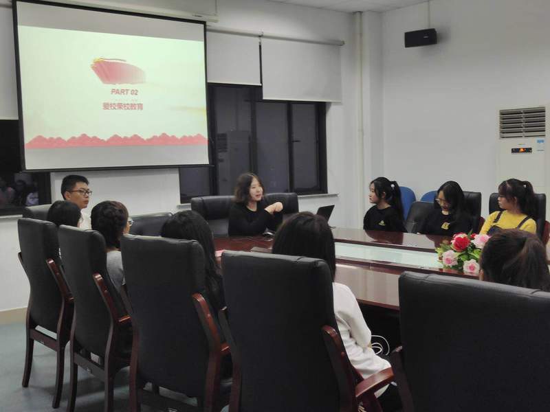 辅导员段佳蓓老师先是以疫情入手,通过一段感人至深的抗疫宣传片,引入本次的爱国主义教育。在新型冠状病毒疫情危机之下,无数令人感动的事迹均是新时代爱国主义的精神的凝聚。疫情下的爱国主义教育,关键在于凝聚爱国情感、深刻认识家国情怀、明确使命担当。同学们对此深有感触,纷纷举手发言,谈谈在疫情生活下,他们的学习、生活。
