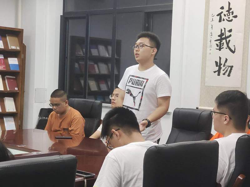 会议伊始,每位同学先是轮流作了一番简单的自我介绍。诙谐幽默的语句很好地打破了初次见面的尴尬,同时又将气氛活跃了起来。在轻松愉悦的环境下,马克思主义学院2020级新生首日教育正式拉开帷幕。