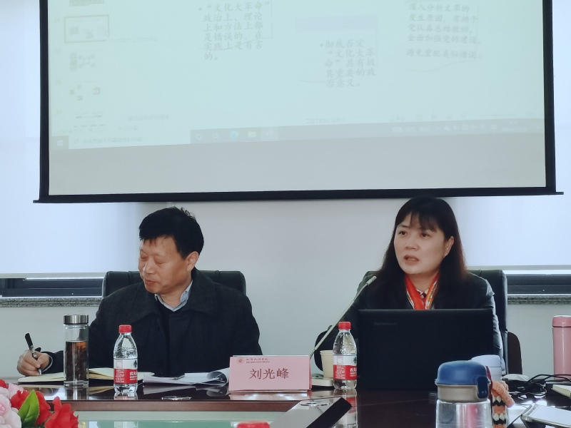 刘光峰表示,出于对历史和现实的研究与考量,她选择“继承与创新:党的三个《历史决议》的比较”作为本次讲座的主题,并以历史视野为逻辑起点详述了党的三个《历史决议》的背景和重大的理论与现实意义。她指出,党的三个《历史决议》是一脉相承又与时俱进的。党的十九届六中全会通过的《中共中央关于党的百年奋斗重大成就和历史经验的决议》传承了马克思主义立场观点方法,注意党的历史表述的连续性,还吸收了理论家们的思想智慧,是一篇光辉的马克思主义纲领性文献,必将激励全党、全国人民阔步而坚定的走向未来。刘光峰还强调思想认同、情感归依,行动才能统一,党的三个《历史决议》都起到了凝聚共识的重大作用。徐俊峰在总结时表示史料分析法是马克思主义学科宝贵的研究方法和逻辑方法,刘光峰教授以史为鉴、立足当下又展望未来,具有坚定的马克思主义信仰和时代情怀,只有“真信、真学、真用”才能深刻领悟我们党百年奋斗的初心使命、重大成就、历史意义、历史经验,才能肩负起青年一代的使命,接续奋斗。