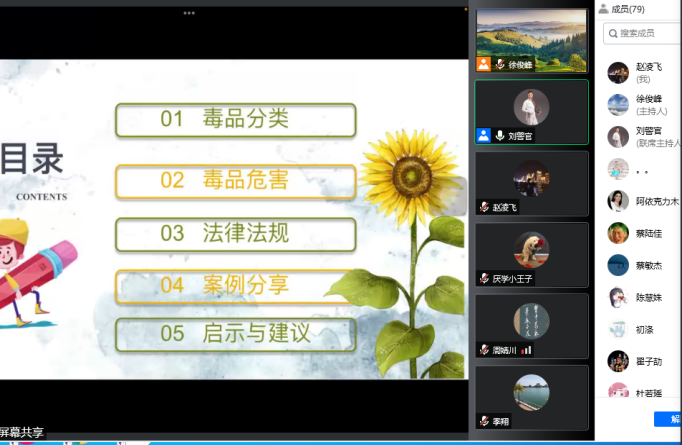 为增强大学生识毒防毒拒毒的意识和能力,5月15晚,新利18官方客服马克思主义学院联合上海市崧泽强制戒毒所在线上举办了“拒绝毒品,捍卫青春”为主题的宣讲活动,此次宣讲是上海市崧泽强制隔离戒毒所“崧青禁毒宣传周”系列活动之“团旗飘扬•崧青守沪”禁毒宣传专项行动之一。活动由学院党总支书记徐俊峰主持,上海崧泽强制隔离戒毒所刘晓勇警官主讲,校宣传部王颖老师,马克思主义学院赵凌飞老师及马院百余名同学参与其中。
