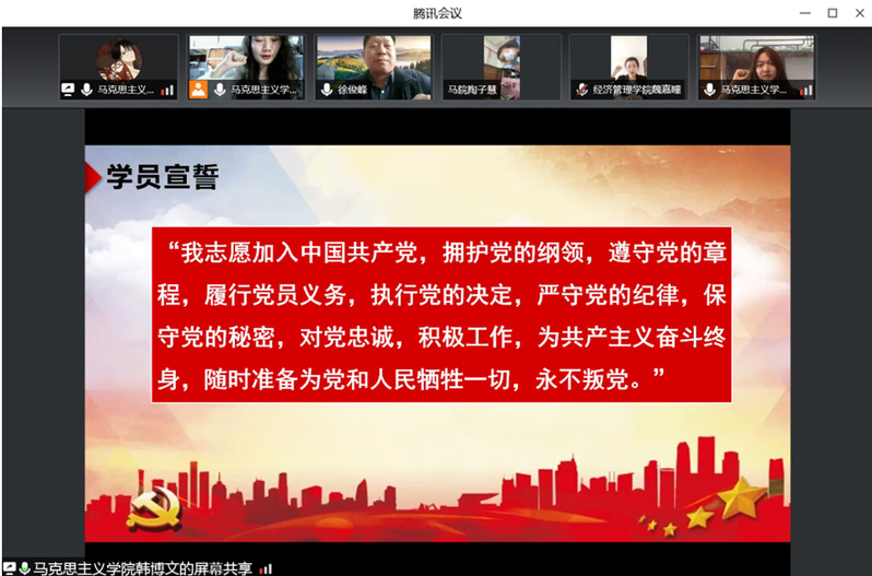 在徐俊峰书记进行的开班动员讲话中,突出介绍了本期党员培训班的开设的要求和意义,鼓励学生党员要提升党性修养,学会学以致用,使学习成为未来生活的重要方式,增强党员担当作为的责任感和使命感,同时也希望学员们强化理论学习,不断提高个人修养,将实践与理论相结合,做到学有所悟、学有所获。陆琼燕老师宣布本次党员培训班导生名单。之后由纪录片学院庄文健作学员代表发言,用青春之姿展现青春活力,拼搏向上。开班仪式最后由刑事司法学院林令德作学员代表领誓,让参会学员牢记入党誓词,一心向党,不忘初心使命。