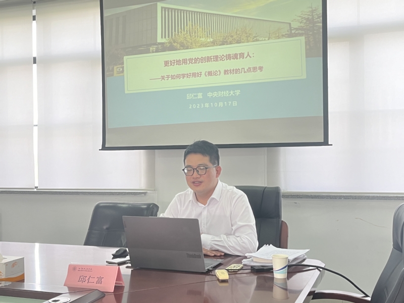 10月17日,马克思主义学院召开“习近平新时代中国特色社会主义思想概论”课程备课会,《概论》课教材编写专家、中央财经大学邱仁富教授莅临指导,会议由院党总支书记徐俊峰教授主持,副院长徐世甫教授、杨华副教授、思政课教师及部分研究生参加。