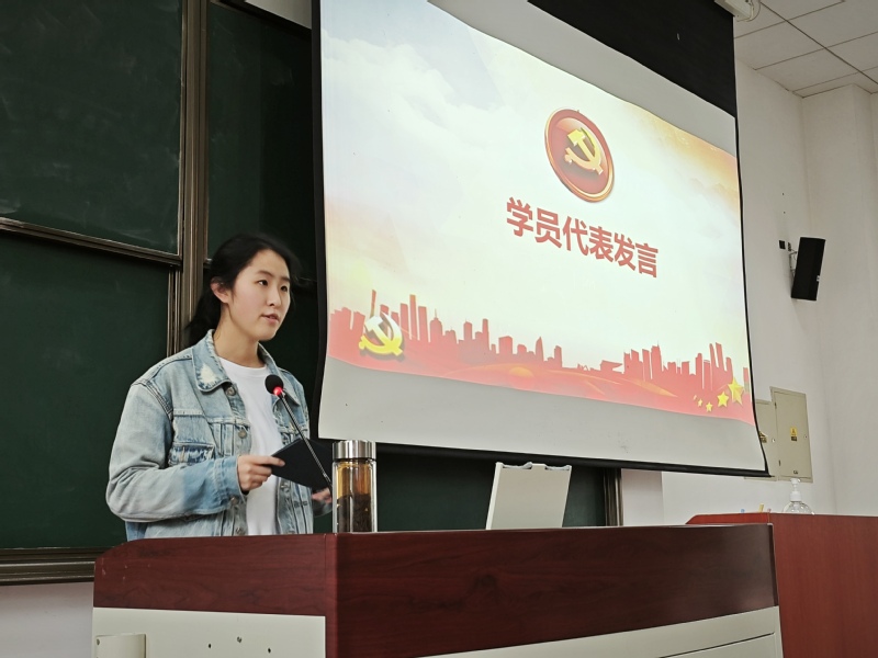 来自法律学院21023班的邹毓佳同学作为本次培训班的学员代表发言,表示要以培训学习明初心、育红心、增信心,为学校健康稳定发展、为中华民族伟大复兴贡献青春力量,做走在时代前列的奋进者、开拓者、奉献者。