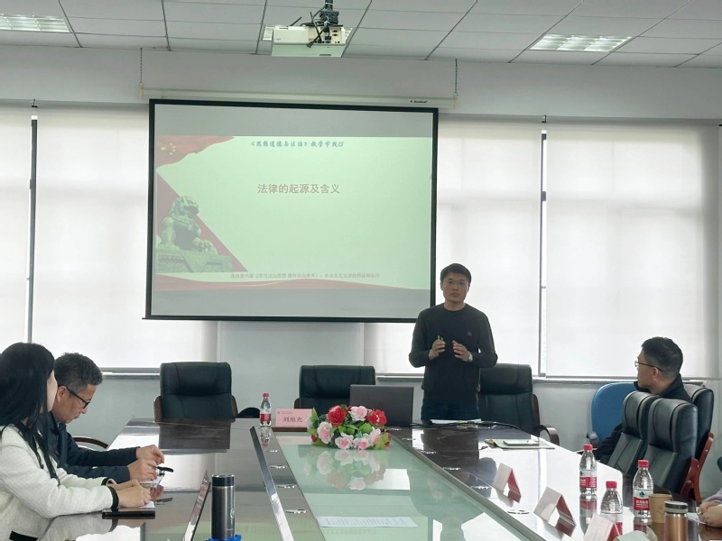 本次活动首先由校“教学示范岗”教师刘旭光进行课堂教学展示。刘老师从不同法学家对法律认识的差异性入手,通过讲解法律的起源与含义,揭示法律的本质。教学重难点清晰,较好地完成了课程教学目标。