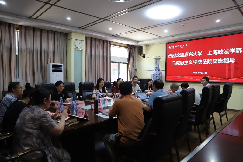 为推动马克思主义学院建设和高质量发展,深化新时代高校学生工作内涵建设,吸引优秀学子报考,提升研究生生源质量和育人实效,并进一步拓宽学生就业面,马克思主义学院副院长杨华、教工支部书记赵凌飞、中国近现代史教研室副教授于智慧一行于7月2日赴江西师范大学马克思主义学院开展马院建设调研、硕士研究生招生宣讲及就业研讨活动。活动由江西师范大学马克思主义学院副院长彭坚主持,嘉兴大学马克思主义学院副院长张笑笑、思政政治教育研究所一行亦参与了活动。