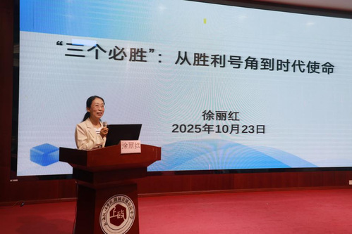 为深入贯彻落实立德树人根本任务,充分挖掘重大历史事件的育人价值,本次“名师在课堂”专场展示活动聚焦“九三阅兵”这一重大历史时刻,旨在将其中蕴含的宝贵精神财富转化为生动、深刻的思想政治教育素材。活动中,徐丽红为与会教师作了题为《“三个必胜”:从胜利号角到时代使命》的专题讲座。讲座逻辑严谨、内涵深刻,系统梳理并深入阐释了“正义必胜、和平必胜、人民必胜”这一重要论断的历史渊源、内涵演进、时代价值及现实启示。报告不仅具有一定的理论价值,更分享了将宏大叙事有效转化为课堂教学实践的方法路径,为一线教师有效开展相关主题思想政治教育提供了宝贵的学术滋养与实践指导。