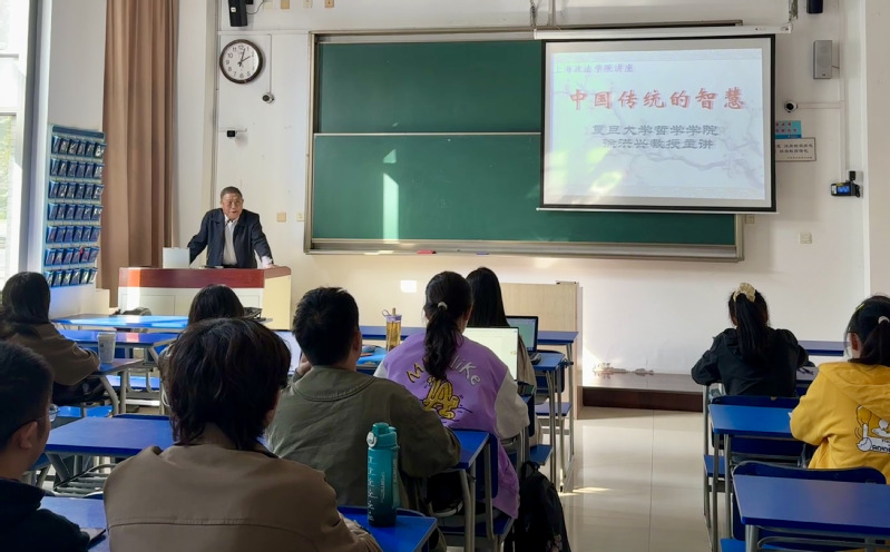 徐洪兴教授以中国传统的智慧为题,深度解读中国传统文化精髓。他以知识与智慧的异同为切入点,以术道的辩证关系,阐释转识成智的思维进阶路径。徐教授认为儒家以“秩序与和谐”为核心,通过周公“制礼作乐”构建社会文明体系,为行为提供明确规范;道家则以“不确定性和变化”为视角,补充修正“理念塑造世界”的局限,提醒正视事物发展的动态性,二者共同构成中华文明守正创新的底层逻辑。他鼓励大家在汲取传统文化智慧的同时,注意结合自身专业思考马克思主义基本原理与中华优秀传统文化相结合的问题,注重理论与实践的结合。