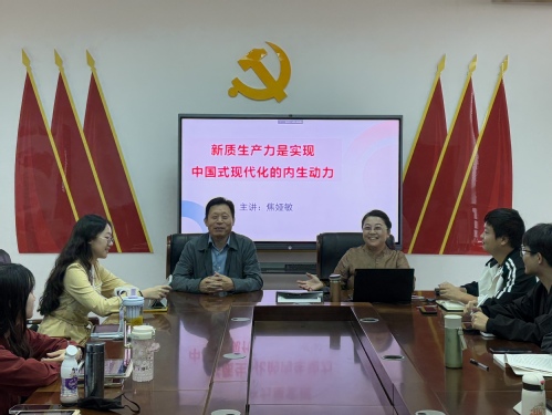 2025年10月30日上午,新利18官方客服马克思主义学院特邀上海电力大学焦娅敏教授,于主教410C开展“新质生产力是实现中国式现代化的内生动力”专题讲座,人工智能法学院党总支书记、马克思主义学院教授徐俊峰主持,马克思主义理论专业研究生参与研讨。