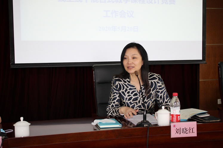 刘晓红在讲话中指出,为积极应对疫情,我校自2020年3月起全面开展了线上教学工作。全面实施线上教学对每所学校、每个教师都是全新挑战,也是促进教育教学与信息技术深度融合实践的机遇。为落实教育部关于“保证在线学习与线下课堂教学质量实质等效”的意见,积极推广“以学生为中心”的课堂教学模式改革,强化信息技术在课堂教学中的深度应用,促进教师更新教育理念,创新教学方法、教学模式,提升教育教学水平,结合本学期线上教学开展情况,学校组织开展“线上线下混合式教学课程设计竞赛”,可谓正当其时。她强调,针对目前“互联网+教育”“智能+教育”优势凸显、现代信息技术全面深度融入教与学过程的形势,学校应紧扣教育部一流课程建设规划,大力建设精品在线课程,推动课程“建以致用,用以促优”,开展线上线下混合式教学课程改革。她提出三点希望:一是各二级学院(部)要组织动员教师参加此次教学竞赛,以此为契机,推进混合式教学课程改革实践,提升教学水平和教学质量,打造在线课程与课堂教学相融合的一流课程;二是广大一线教师要充分利用前期线上教学实践中掌握的技能、积累的经验,顺势而为,让前期的线上教学演进为今后的线上线下混合式教学改革;三是教学管理部门、教师教学能力发展中心要在教师提升教学能力、信息技术能力,推进教学方法、教学模式改革实践等方面提供支持。