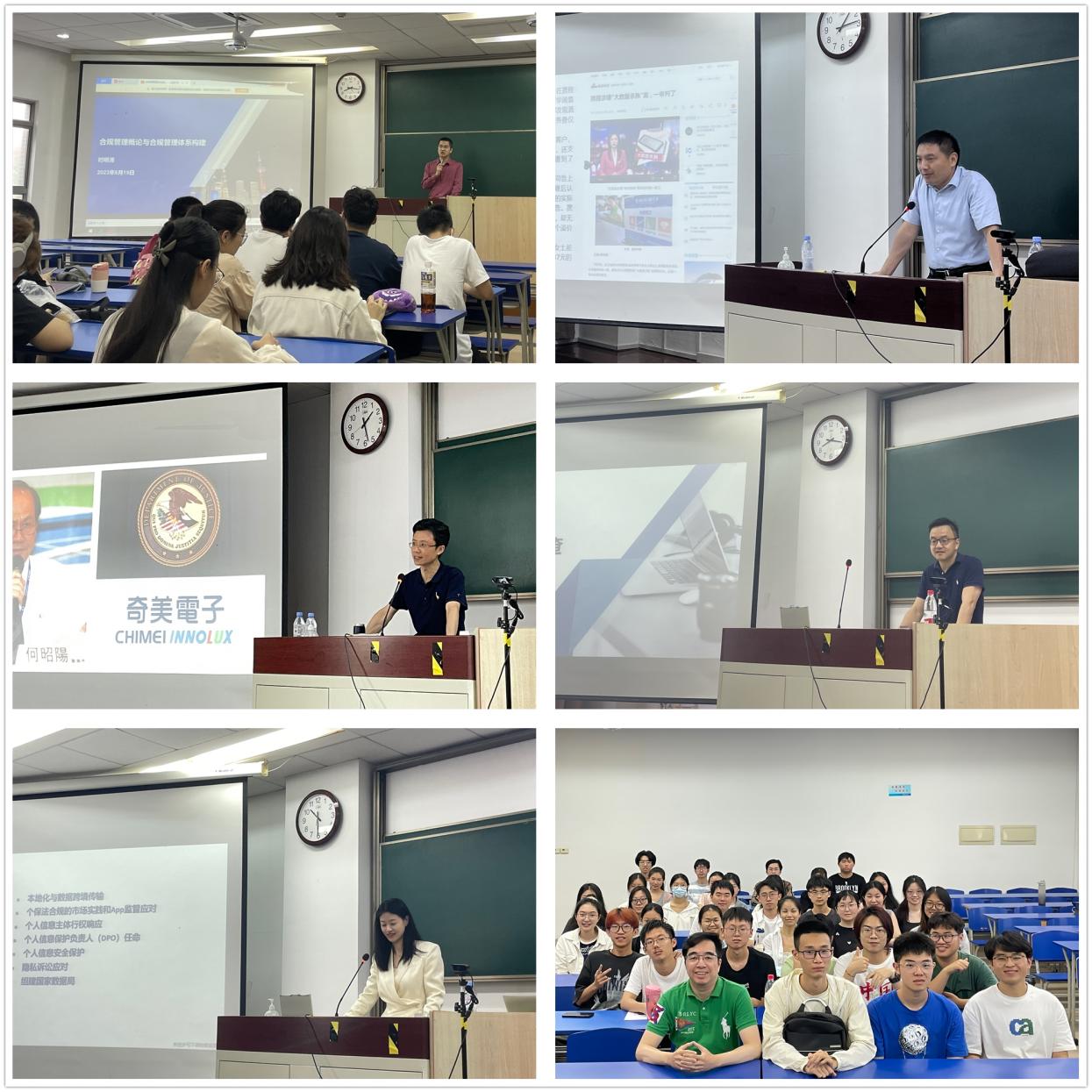 《企业合规法律实务》课程先后邀请了先正达集团合规总监时明清先生、微创投资控股有限公司大中华区法务与合规部法务总监姚子讷先生、西门子合规调查部门亚洲和大洋洲区域负责人柯皓先生、福迪威医疗板块亚太地区合规总监毛珏雯女士、上海白玉兰开源开放研究院法务总监陈凯先生、蔚来法务总监王诗笋女士、腾讯集团反垄断合规专家傅育生等十位优秀的实务专家到校讲课。课程内容包括“企业合规管理体系建设的几个基本问题”“企业并购合规实务”“涉案企业合规第三方评估实务”“公司内部调查”“医疗合规实务”“人工智能合规法律实务”“企业数据隐私合规实务”“企业反垄断合规实务”八大主题。课堂上老师结合自己的从业经历,并穿插课堂提问环节,向学生们传授了生动丰富的实务经验。