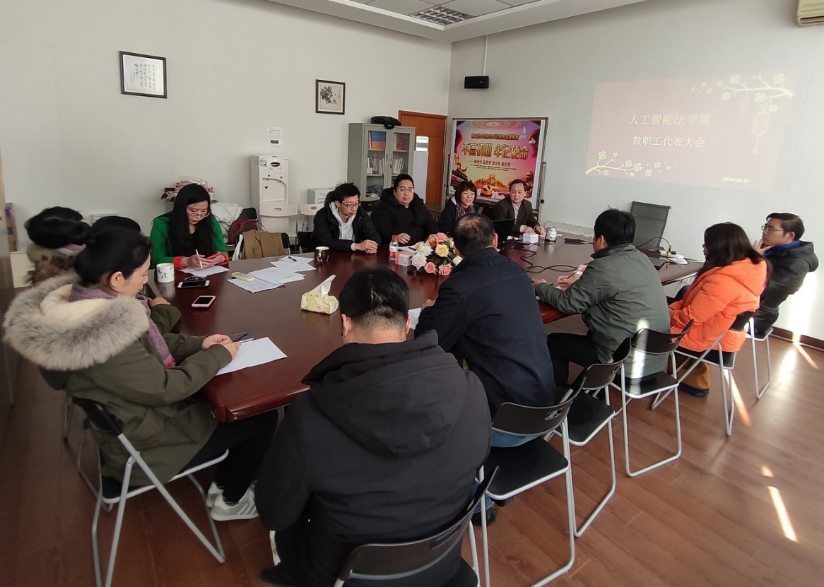 2019年12月31日,正值辞旧迎新之际,人工智能法学院在主教209C会议室召开了教职工代表大会。出席会议的有院领导和全院教职工共14人。