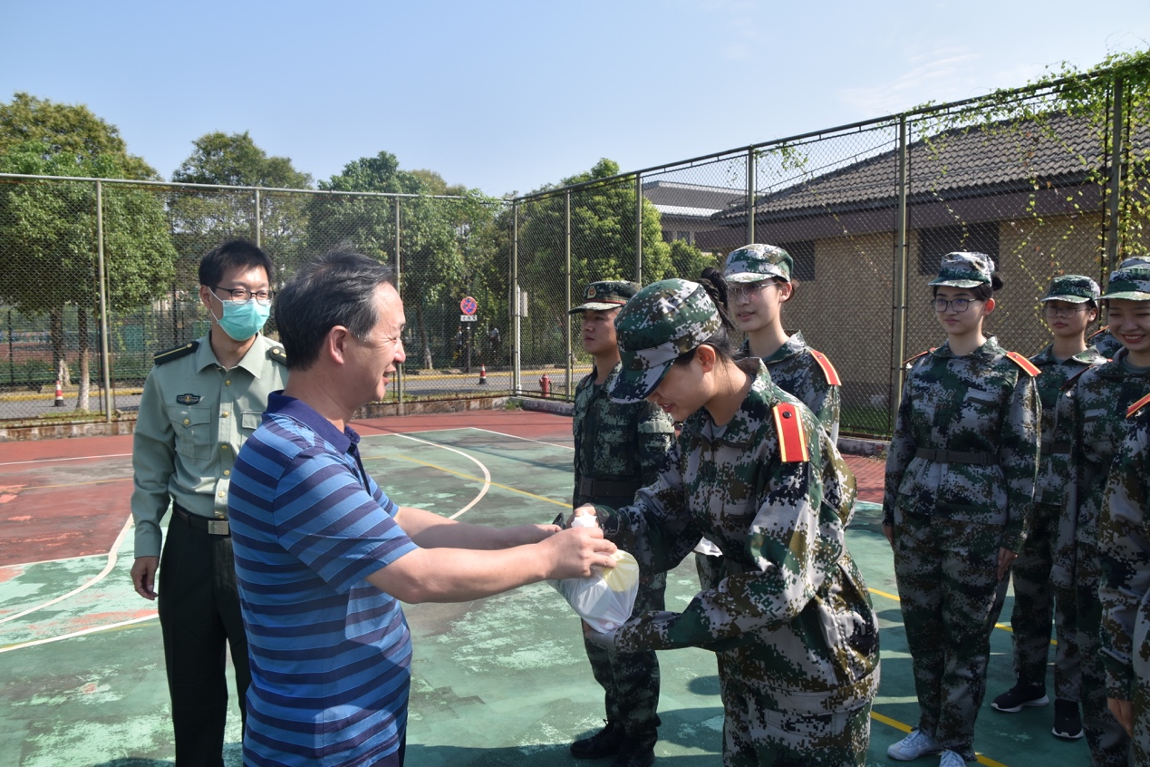 最后,学院领导给全体军训学生、教官、带教教师以及军训导生送来了慰问品,并鼓励全体学生在军训中练出自我,创造出人生美好记忆。