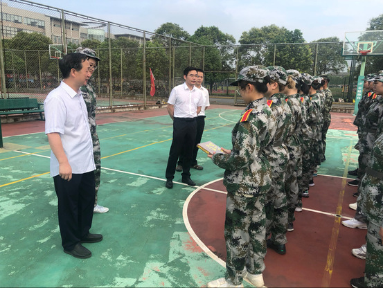 2020年9月10日星期四上午,人工智能法学院党总支书记欧阳为民教授、院长杨华教授、党总支副书记张顺芳老师和副院长黄芹华副教授一行来到智能法学专业学生的训练场地,再次慰问正在军训的全体学生。