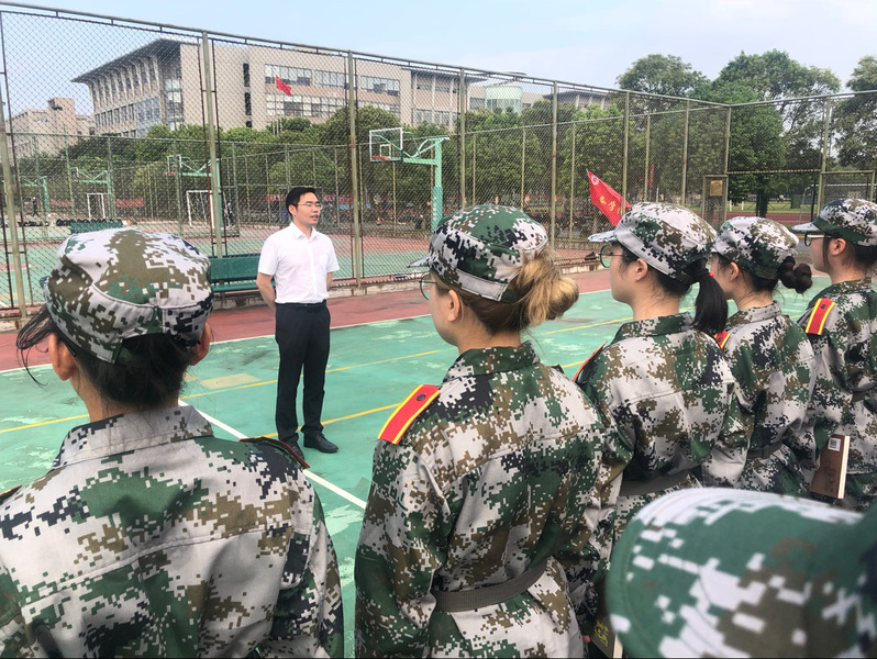随后,杨华院长代表学院向全体学生发放了军训慰问品,并向全体军训学生发表了慷慨激昂的讲话。他首先与同学们分享了自己刻苦的军训经历,对学生们军训中展现出来的刻苦精神与坚定意志表示了肯定。同时也提出了严格要求,他希望我院学生能够通过军训磨练自己的意志品质,展现出人工智能法学院学生的风采。最后,杨华院长强调,在高强度训练条件下,也要注意自己的身体状况,要在健康的前提下,竭尽所能地高质量地完成军训任务。