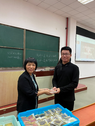 典礼结束后,每个同学都收到了学院分发的两枚印有“上政”图案的月饼。