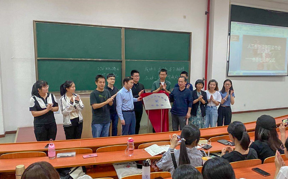 师生发言结束后,在场师生共同进行了人工智能法学院“书香社”的揭牌仪式,标志着人工智能法学院读书会活动正式开启。