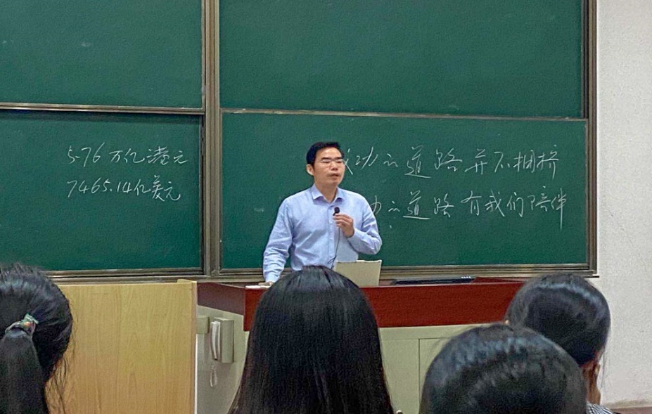 最后,杨华院长发表了热情洋溢的讲话。他在黑板上书写了“成功的道路并不拥挤,成功的道路上有我们陪伴”,并且分享了马云的创业经历。杨华院长表示,“书中自有黄金屋”,通过读书,我们可以获得面对挑战的勇气,勇于走上通往成功的道路。