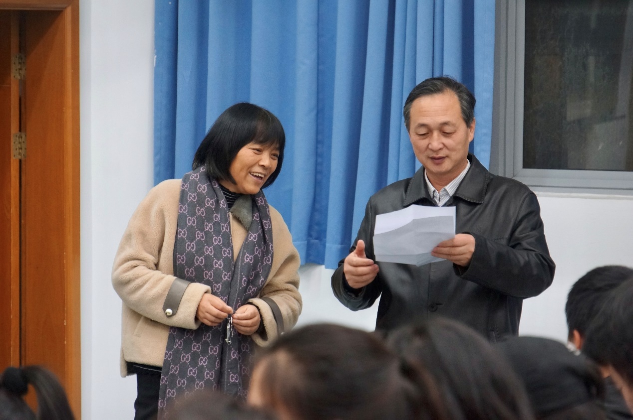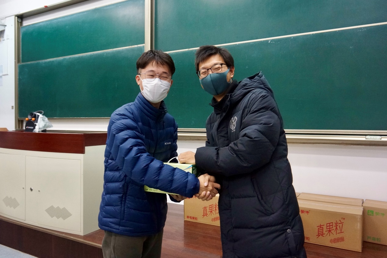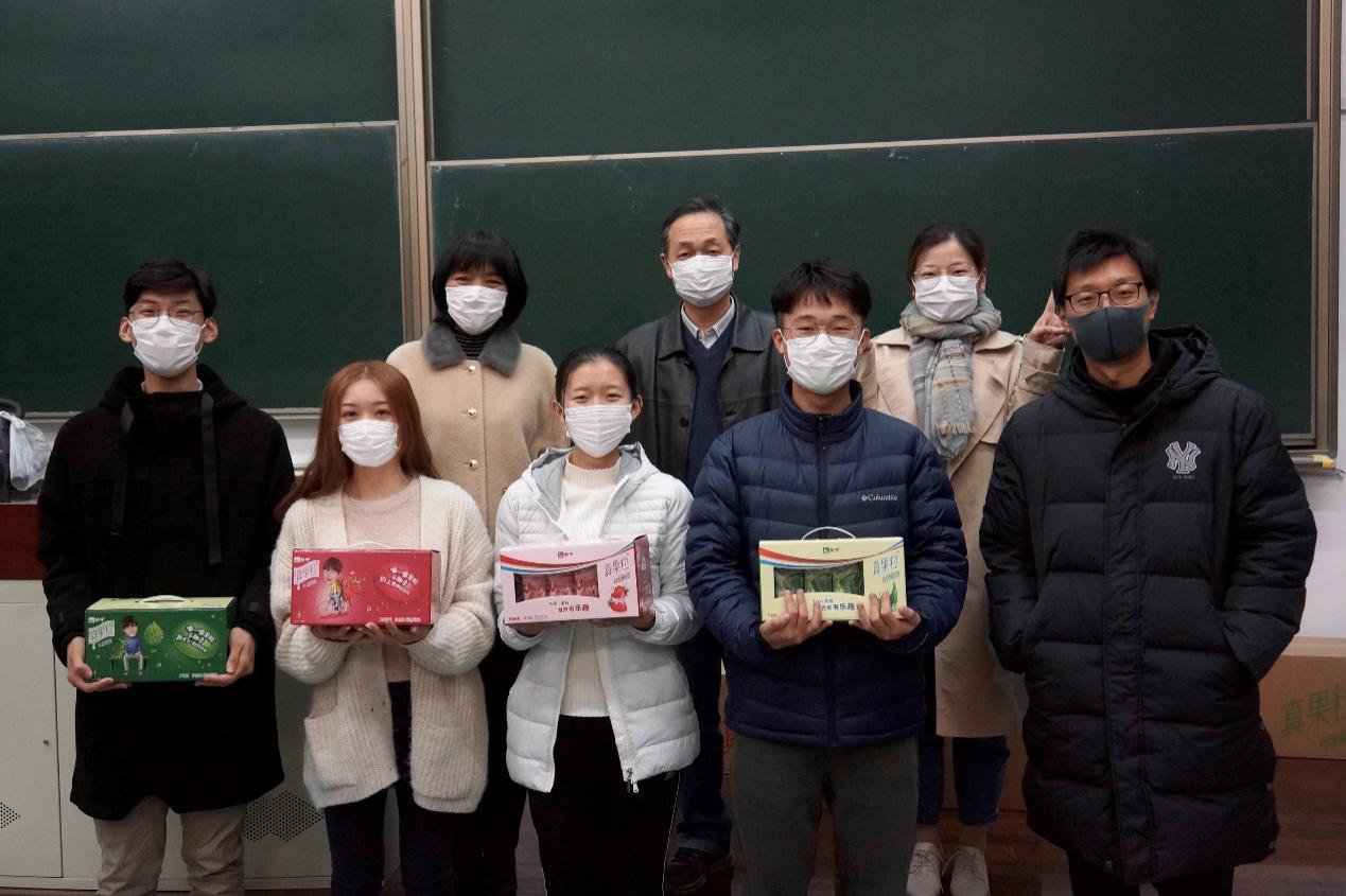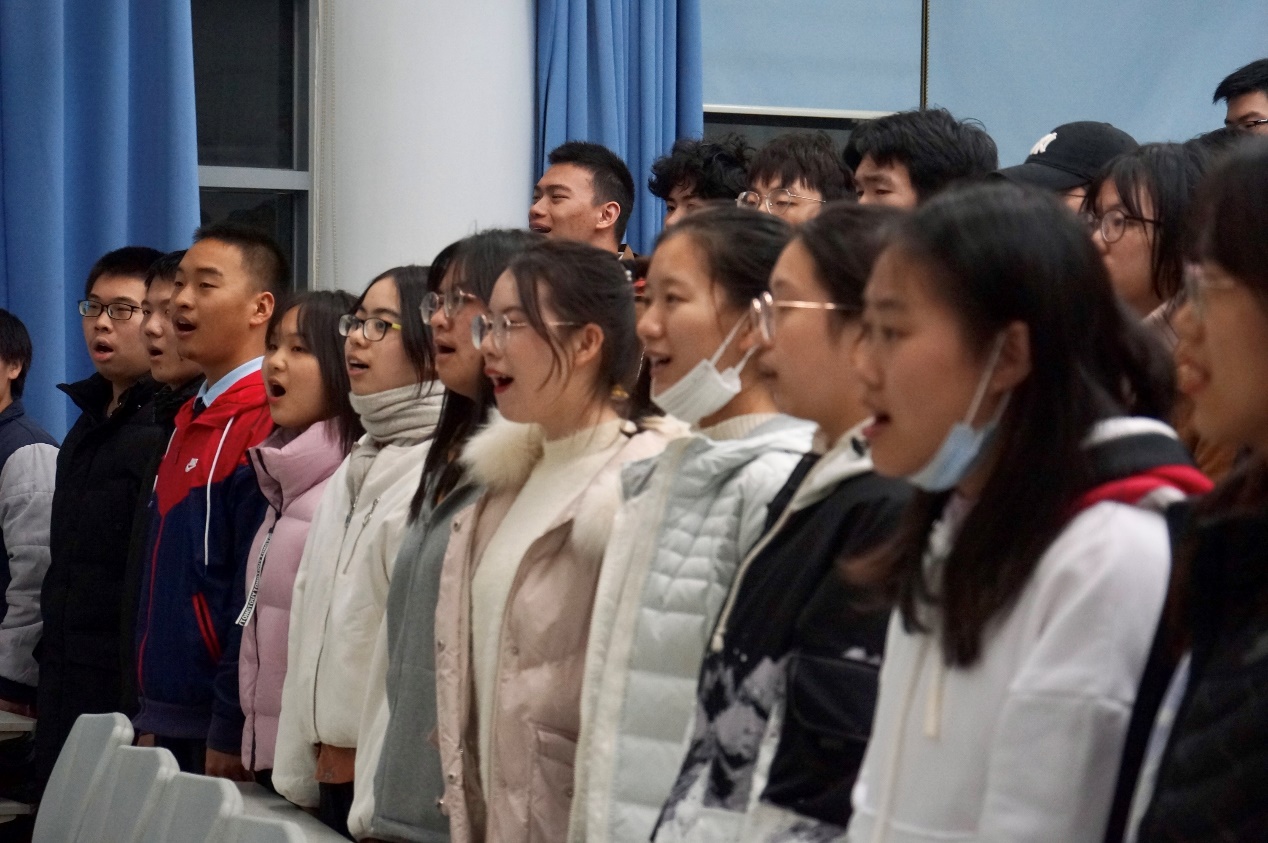 在排练的过程中,同学们认真听指挥指导,不断地提升自己水平。老师们伴着同学们的歌声中踏入排练教室,他们分别与学生代表亲切交流,向他们致以温暖的问候并对本次红歌会提出以下期望:希望同学们可以保持现在向好的势头,找出自己的不足并及时改正,以一个良好的状态走上舞台,为学院争光!不仅如此,老师们还为同学们带来了慰问品,在寒冷的冬季给同学们送上温暖。