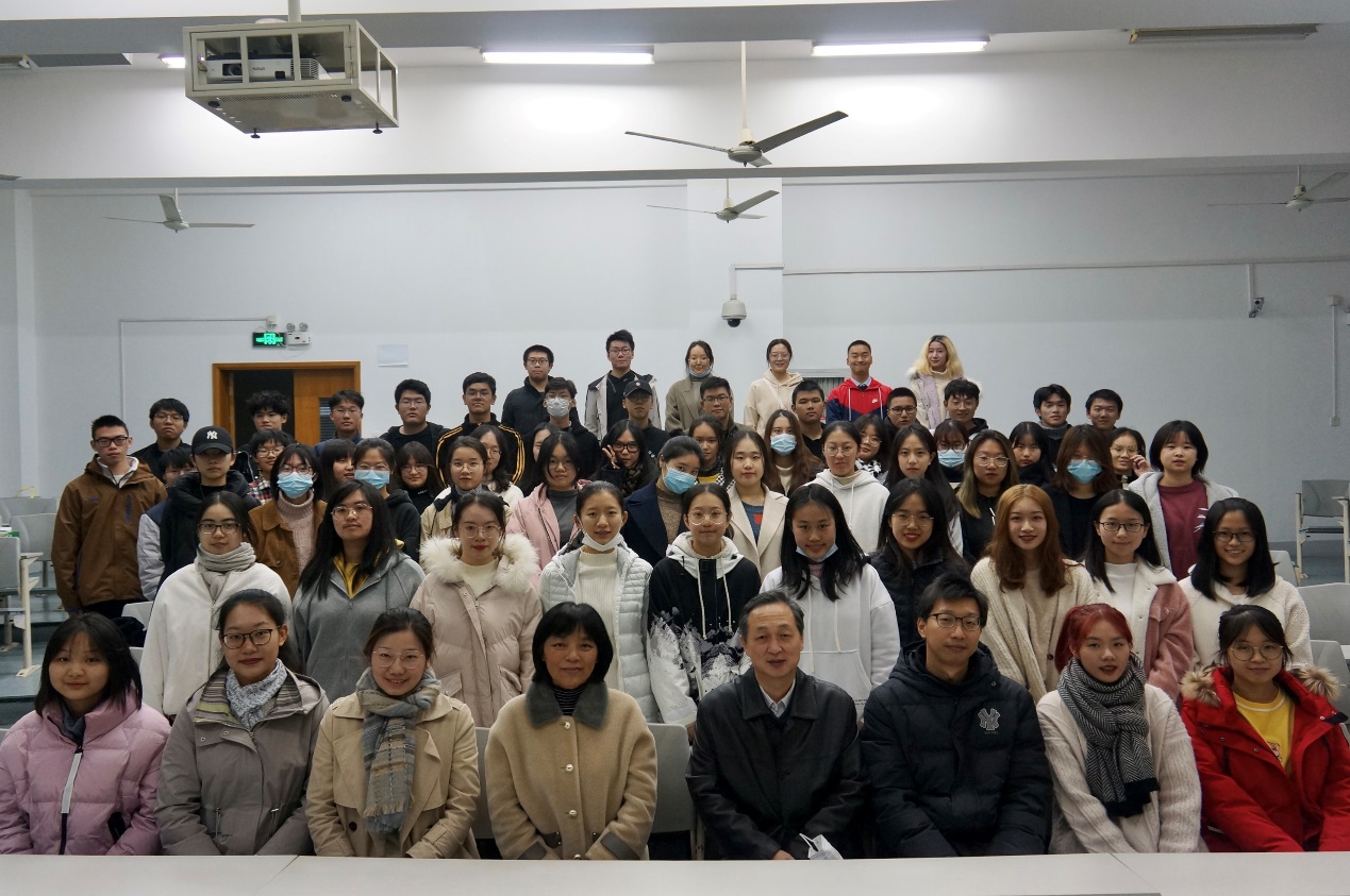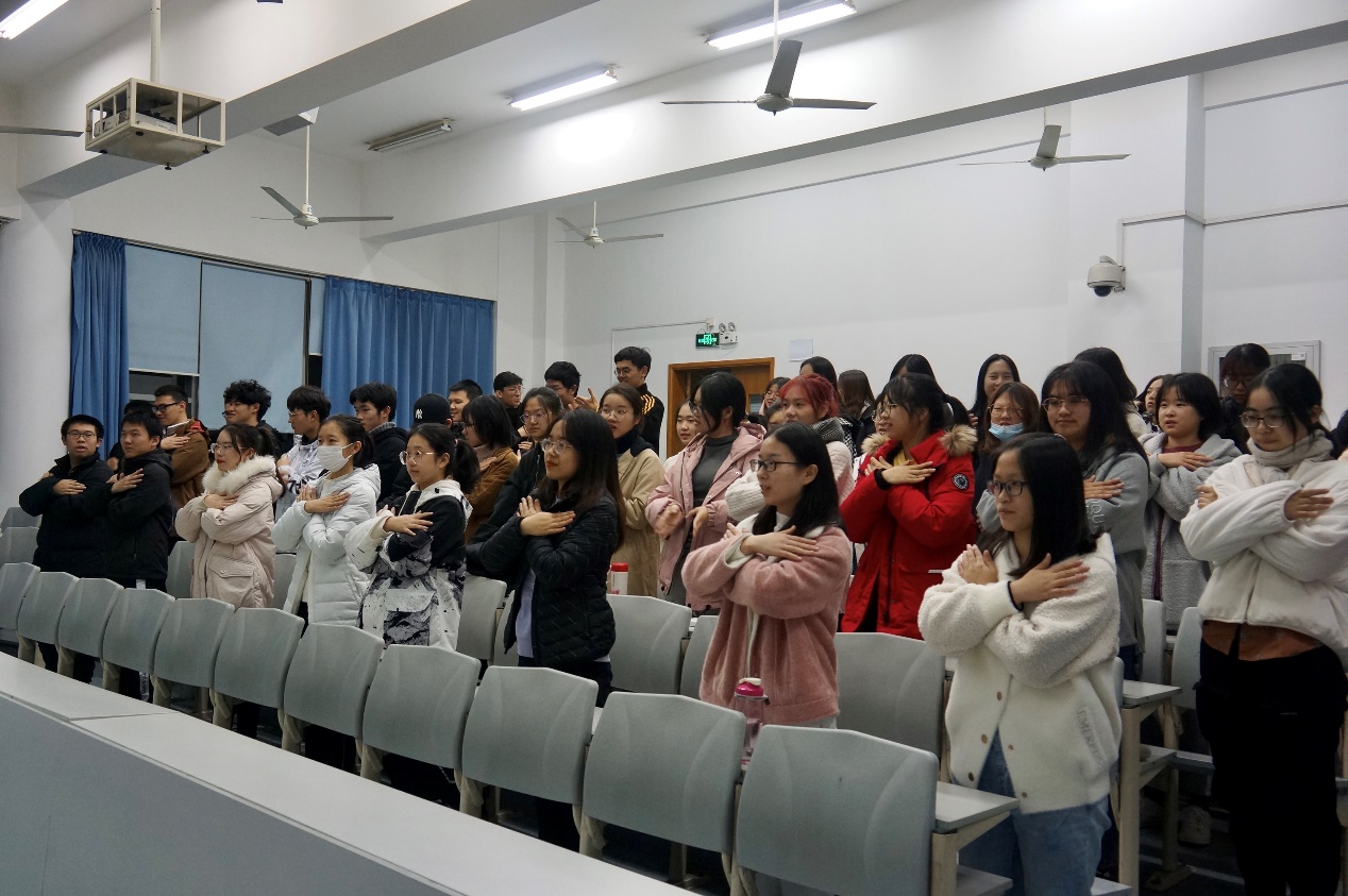 2020年12月3日晚上八点,人工智能法学院党总支书记欧阳为民、副书记张顺芳、智能法19161班主任马亮老师以及智能法20161辅导员颜涵老师一行代表学院来到红歌会排练现场慰问参演同学。