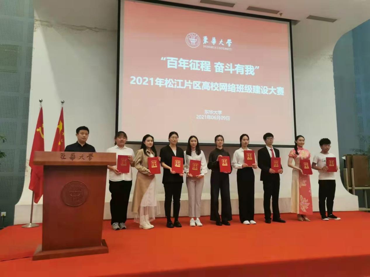 6月9日,“百年征程 奋斗有我”2021年松江片区高校网络班级建设大赛在东华大学举办。我院智能法20161作为新利18官方客服代表队之一,通过精心准备和优异表现,斩获“百年征程 奋斗有我”2021年松江片区高校网络班级建设大赛第三名,被授予松江片区“先进网络班级”称号。