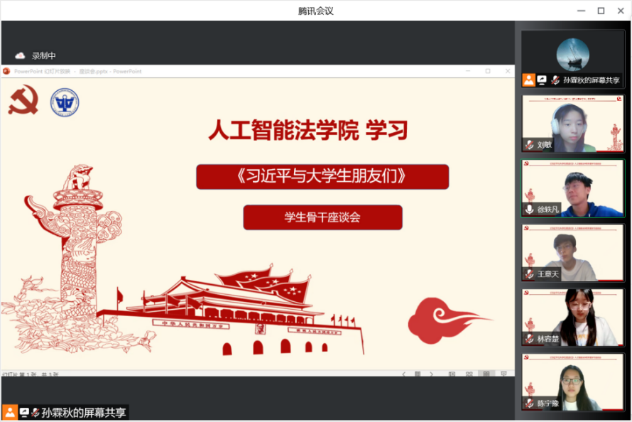 4月17日,人工智能法学院召开学院学生骨干学习《习近平与大学生朋友们》座谈会,专题学习4月8日和4月11日中国青年报刊发的两篇专题报道,学院团委书记徐轶凡主持座谈会,院团委学生会全体学生骨干、班团骨干代表参加。